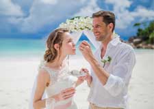 Traumhafte Hochzeit auf den Seychellen mit weißen Sandstränden und tropischer Kulisse.